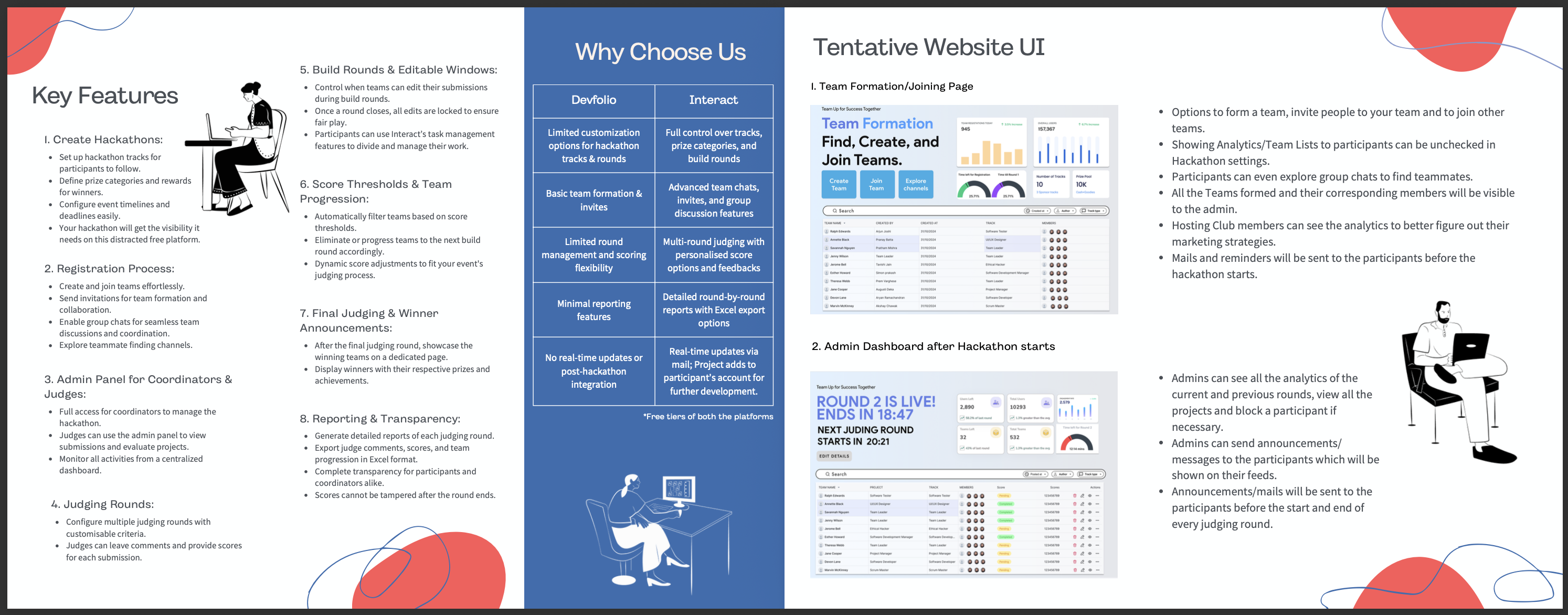 The next day was the hackathon. The first real test of the judging flow was in production, live, with a 1000+ participants and actual judges scoring actual teams. Nothing broke. It was nowhere close to smooth but it held together and by the end of it everything had gone through without a failure. That moment cracked something open. Five to six clubs signed on to use Interact for the larger set of hackathons happening later that month. The platform had a reputation now, even if a small one.
