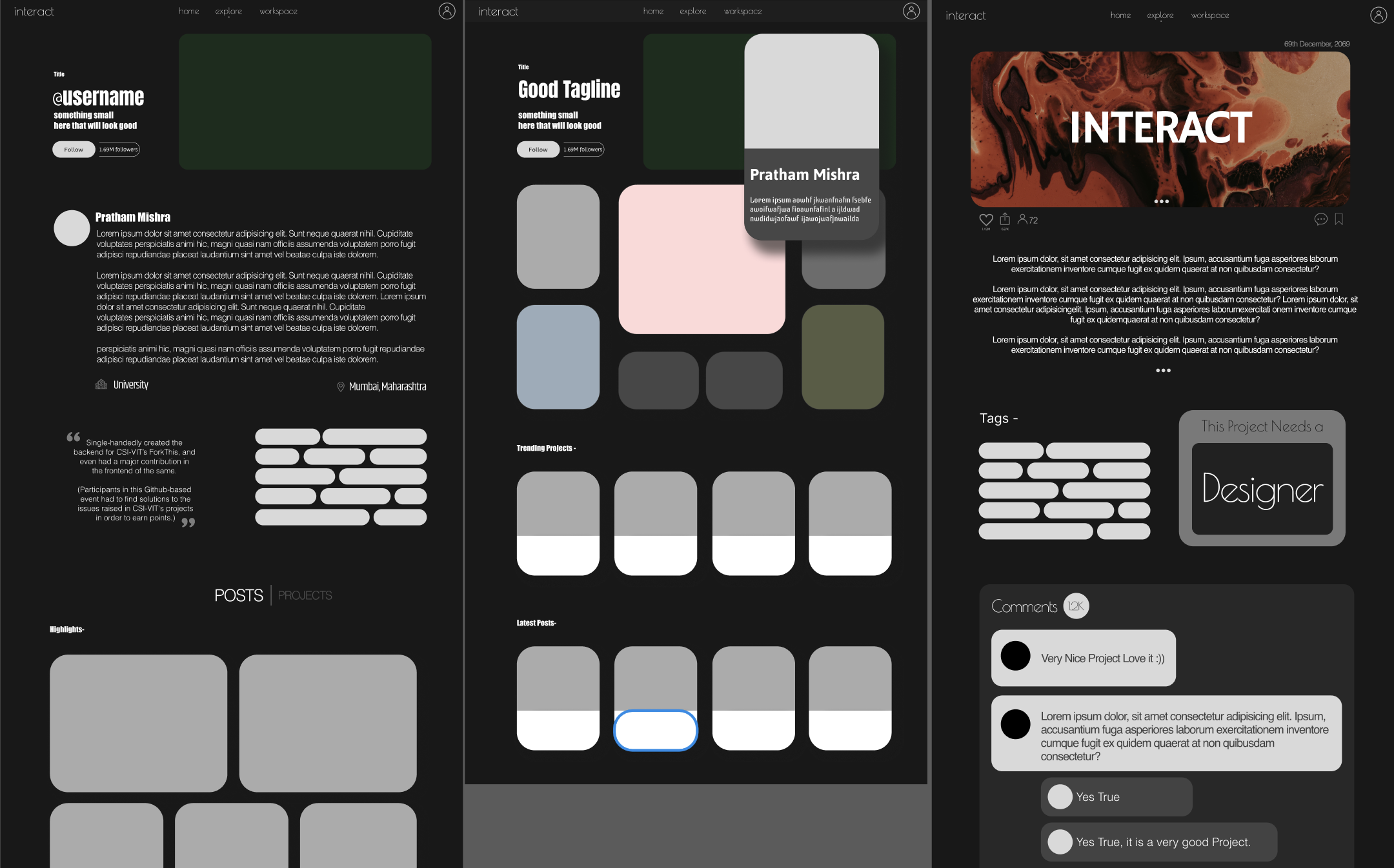 Interact V1 Figma designs - the first attempt at giving the idea a visual form