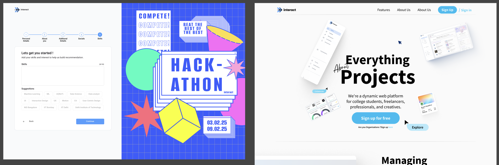 That same month, many hackathons were being planned as part of a large technical initiative at VIT. I saw an opportunity to get Interact in front of a real audience and pitched the idea of running all of them on the platform. Built in team formation, dashboards, task management, leaderboards, judging, all of it inside Interact. The college authorities liked it. What happened next I was not prepared for.